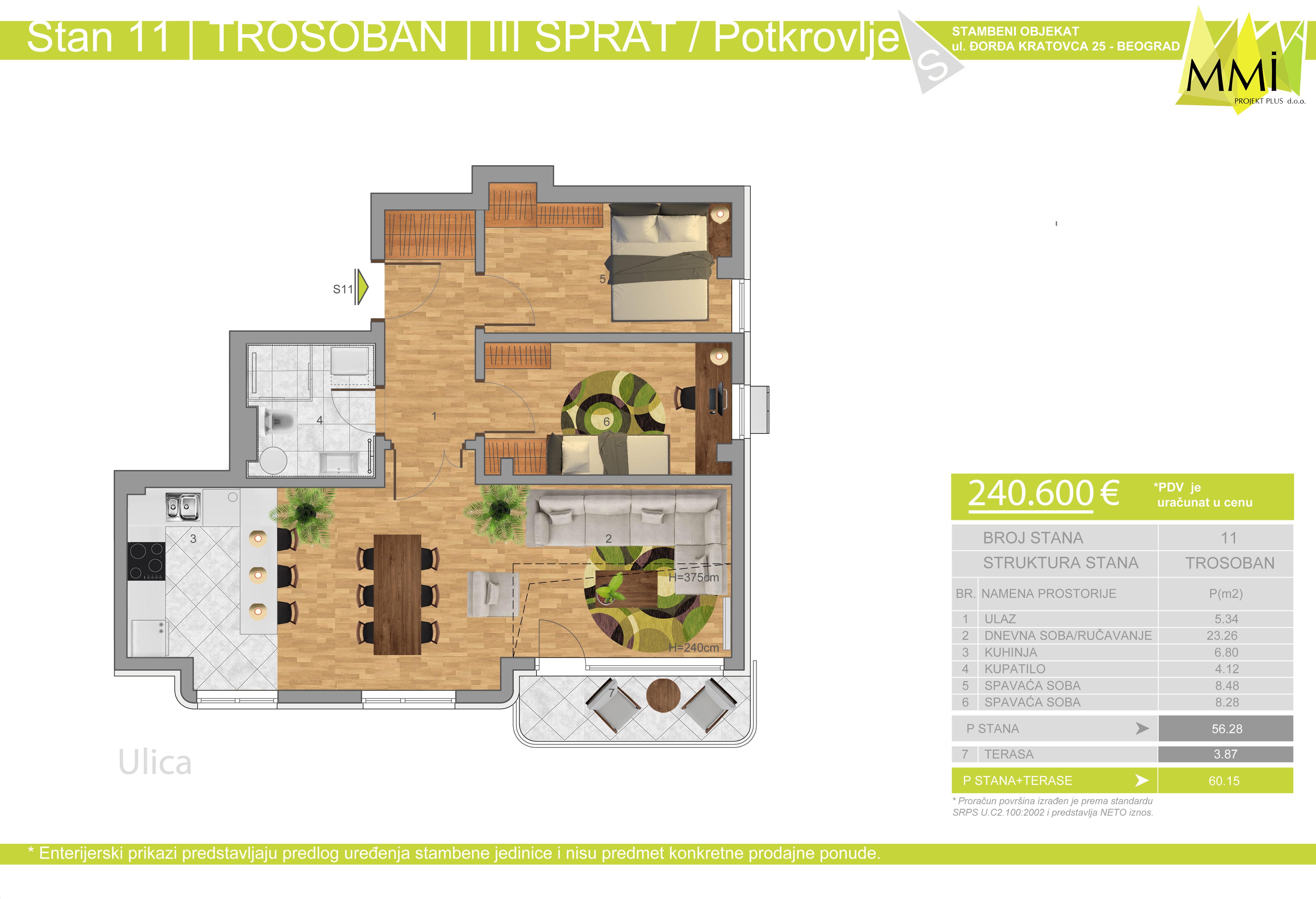 Orijentisan je ka jugu, ka mirnoj ulici