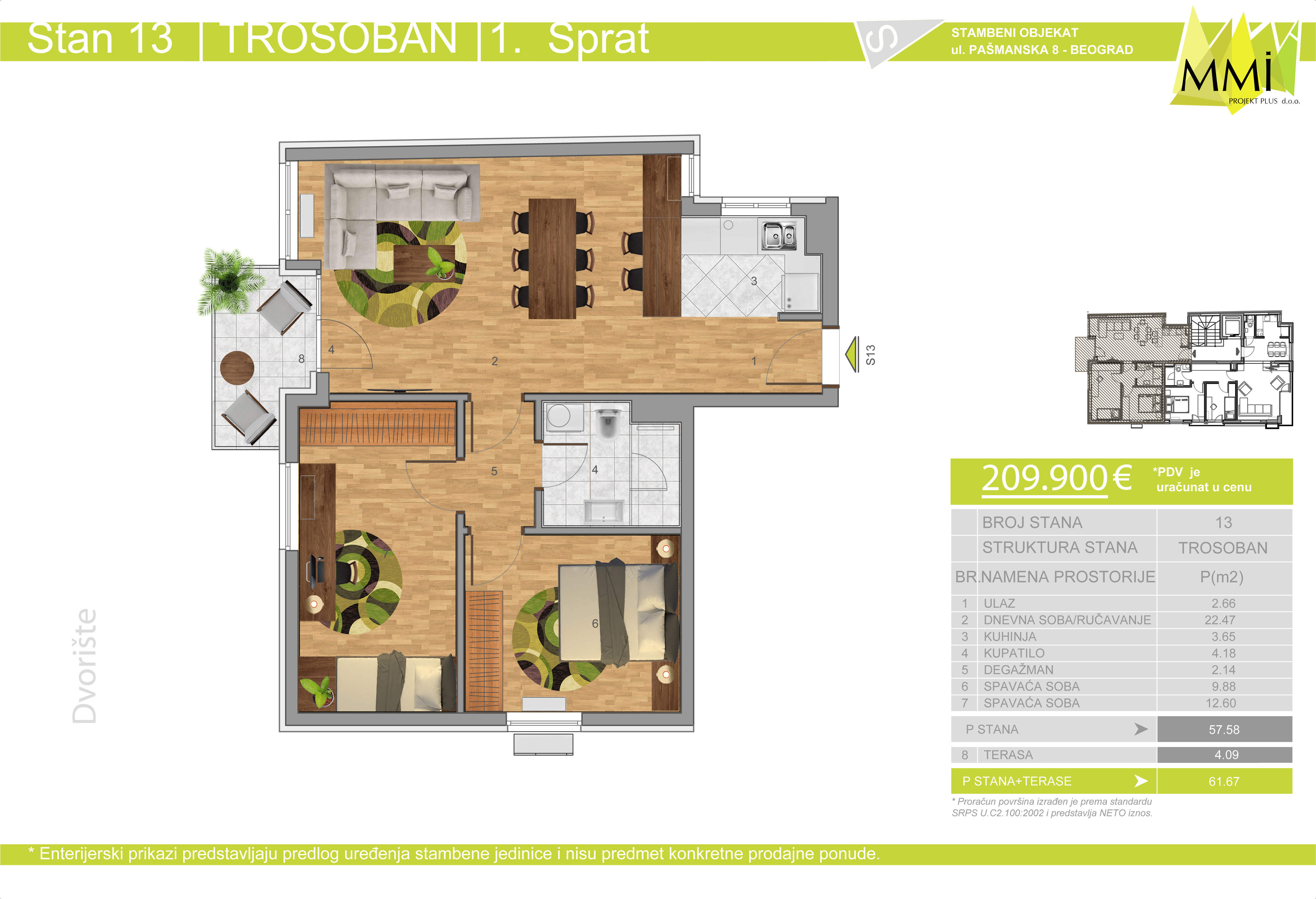 Savremen luksuzan stan sa dnevnim boravkom, dve spavaće sobe, terasom.